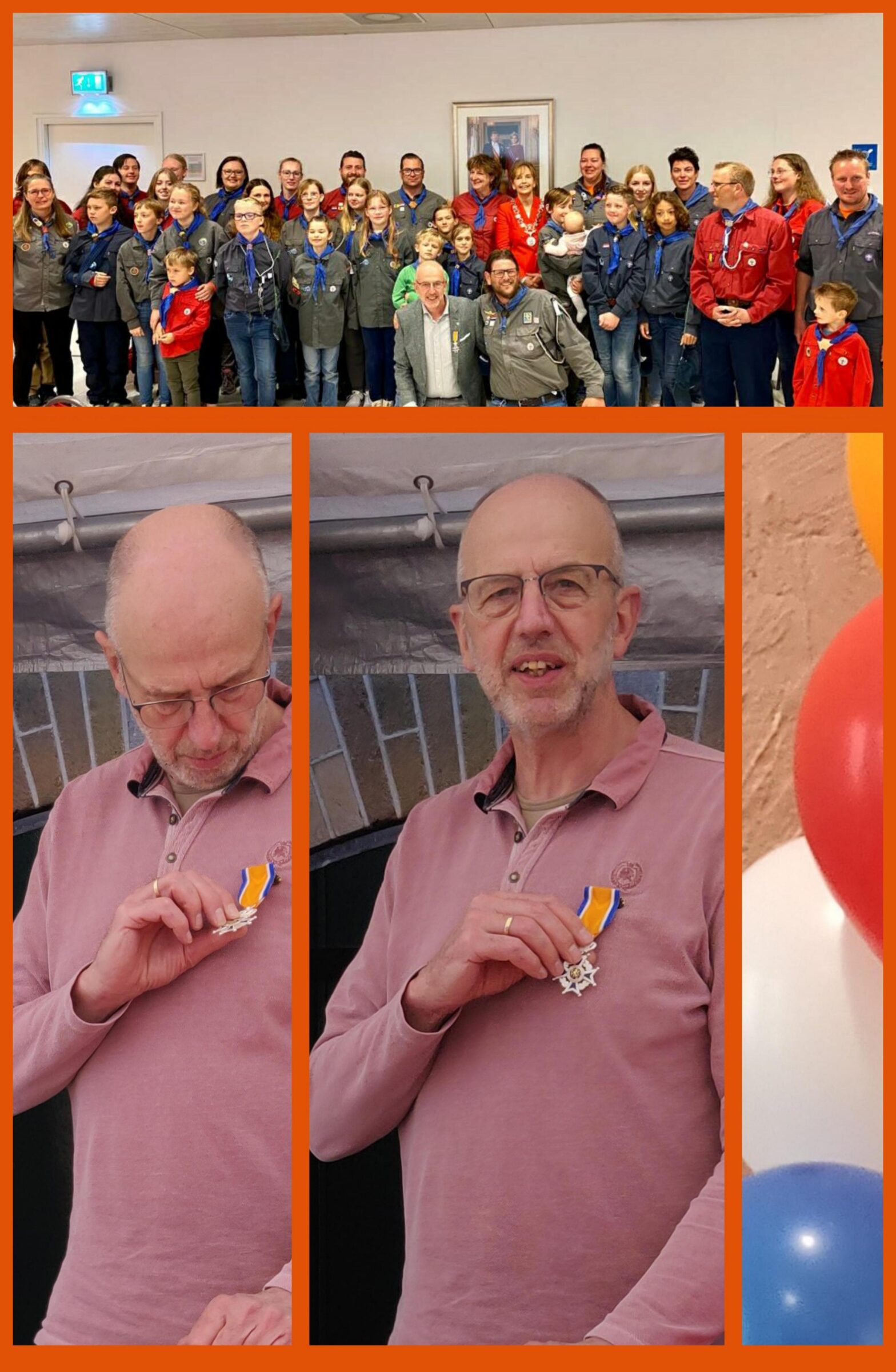 Dinsdag 26 april is Bram benoemd tot ridder in de Orde van Oranje Nassau en kreeg het ridderspeltje opgespeld door burgemeester Junius. Hij heeft de onderscheiding gekregen voor zijn grote betrokkenheid bij heel veel organisaties, waaronder Scouting Hellevoetsluis.Met een warm hart hebben we namens Scouting Hellevoetsluis een lange aanbevelingsbrief geschreven waarom hij een koninklijke onderscheiding… Lees verder Een koninklijke onderscheiding voor Bram Kap